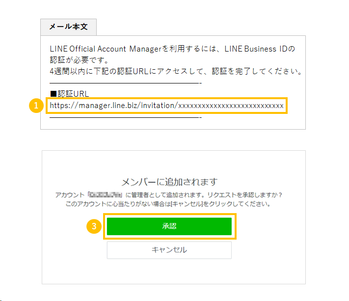 「件名|LINE公式アカウント認証URLのご案内」を開いてください。