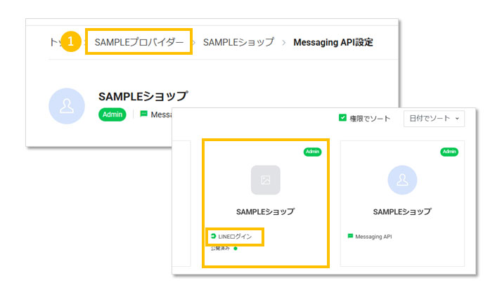 ※Messaging APIおよびLINEログインチャネルが設定済の場合の確認手順です。未設定の場合はこちらをご確認ください。