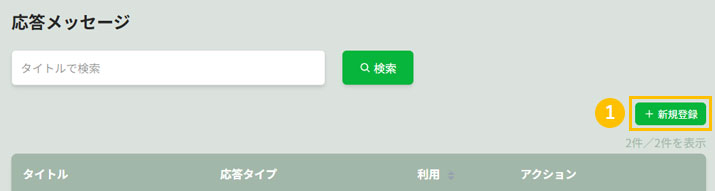 - 1SCLAMS管理画面のサイドメニュー「自動応答管理」から「応答メッセージ」をクリック