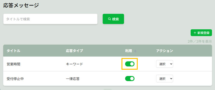 応答条件や返信メッセージの内容を設定・管理することができます。
