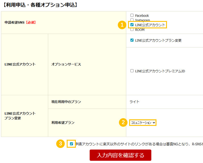 - 1申請希望SNSで「LINE公式アカウント」を選択