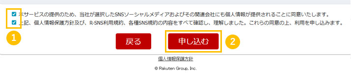 - 1遷移後のページで個人情報保護方針および利用規約への同意文にチェック