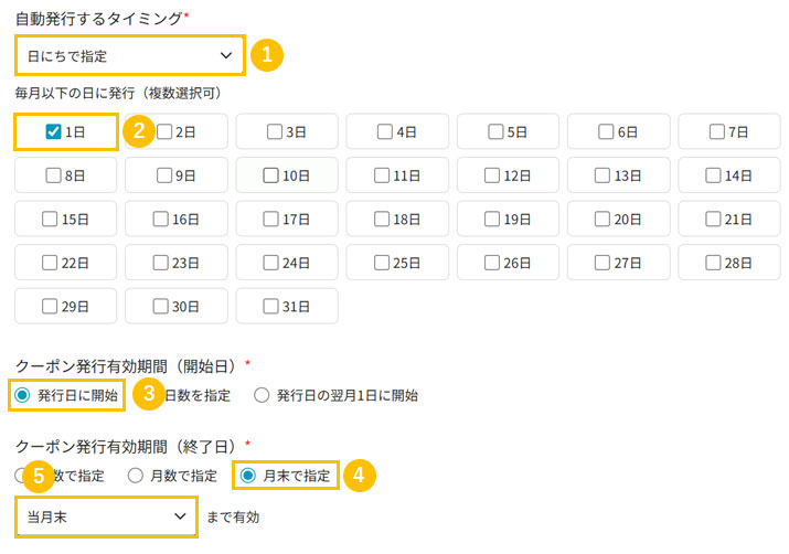 4. 4クーポン発行有効期間(終了日)で「月末で指定」を選択