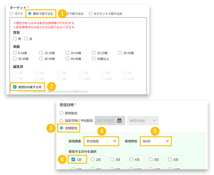 6. 6配信する日付を選択で「1日」を選択